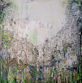¿Sus armas? 'Graffitis Imaginarios' compuestos de rotuladores y acrílicos sobre lienzos que pueden verse en vivo hasta el 23 de Junio en el espai [b] de Gràcia.