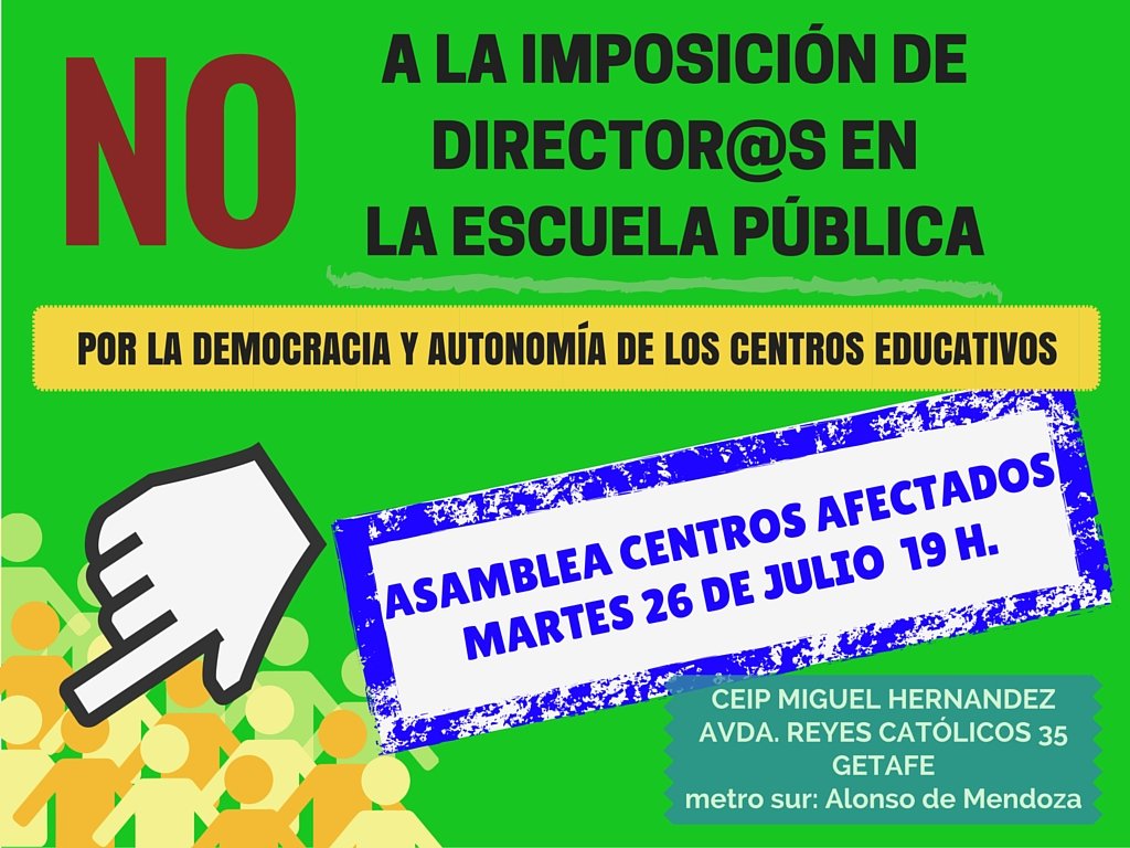 Al amparo de la Ley Orgánica para la Mejora de la Calidad Educativa (LOMCE), el Gobierno de la Comunidad de Madrid ha sembrado una nueva polémica en vísperas de las vacaciones de verano. Los sindicatos y la Marea Verde, así como los partidos de la oposición madrileña, acusan a Cristina Cifuentes y su Ejecutivo de hacer nombramientos a dedo en algunos centros durante los procesos de renovación de directores de cara al próximo curso.